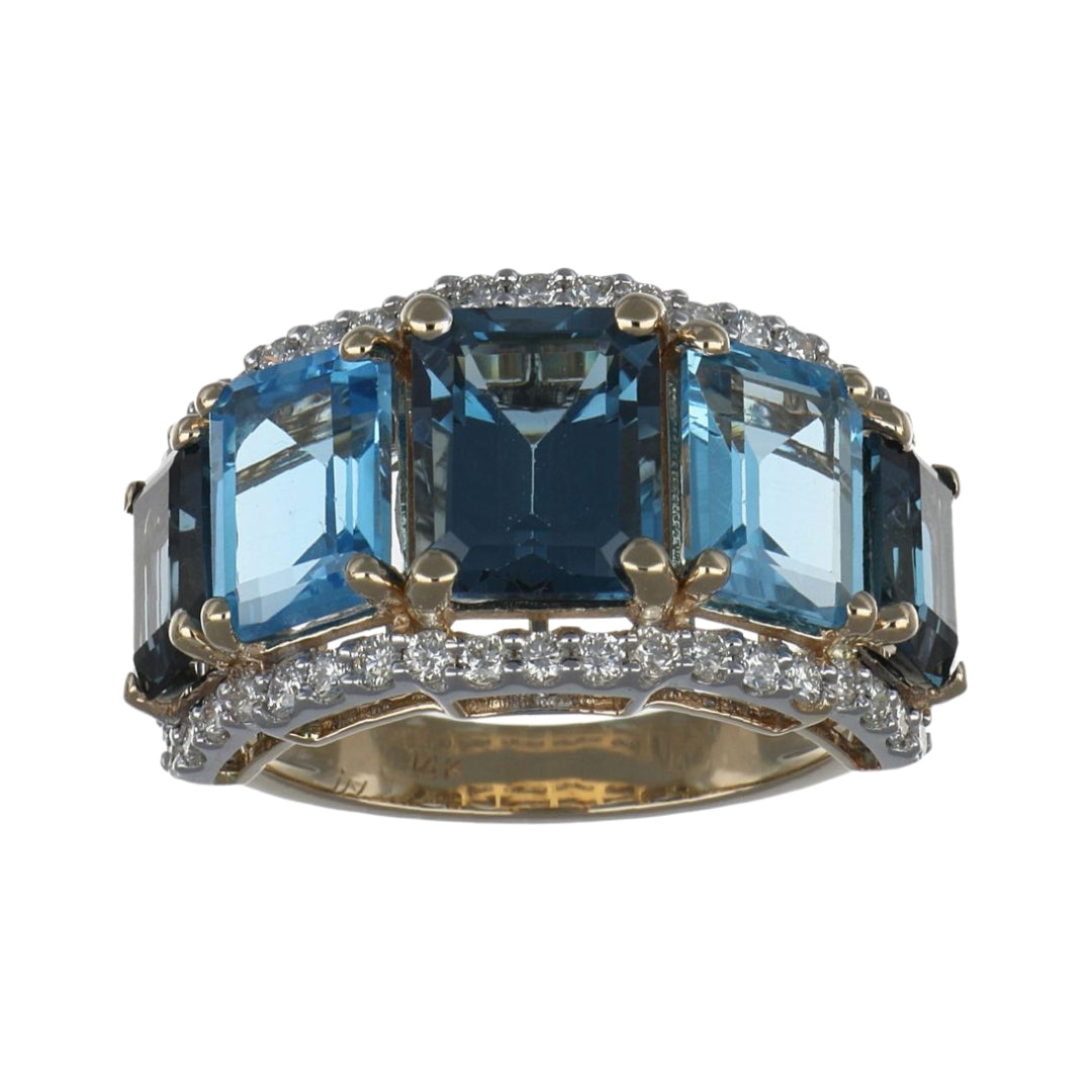 London Blue Topaz Ring (Blue Topaz 1.7 cts. Blue Topaz Included cts. White Diamond 0.38 cts.)