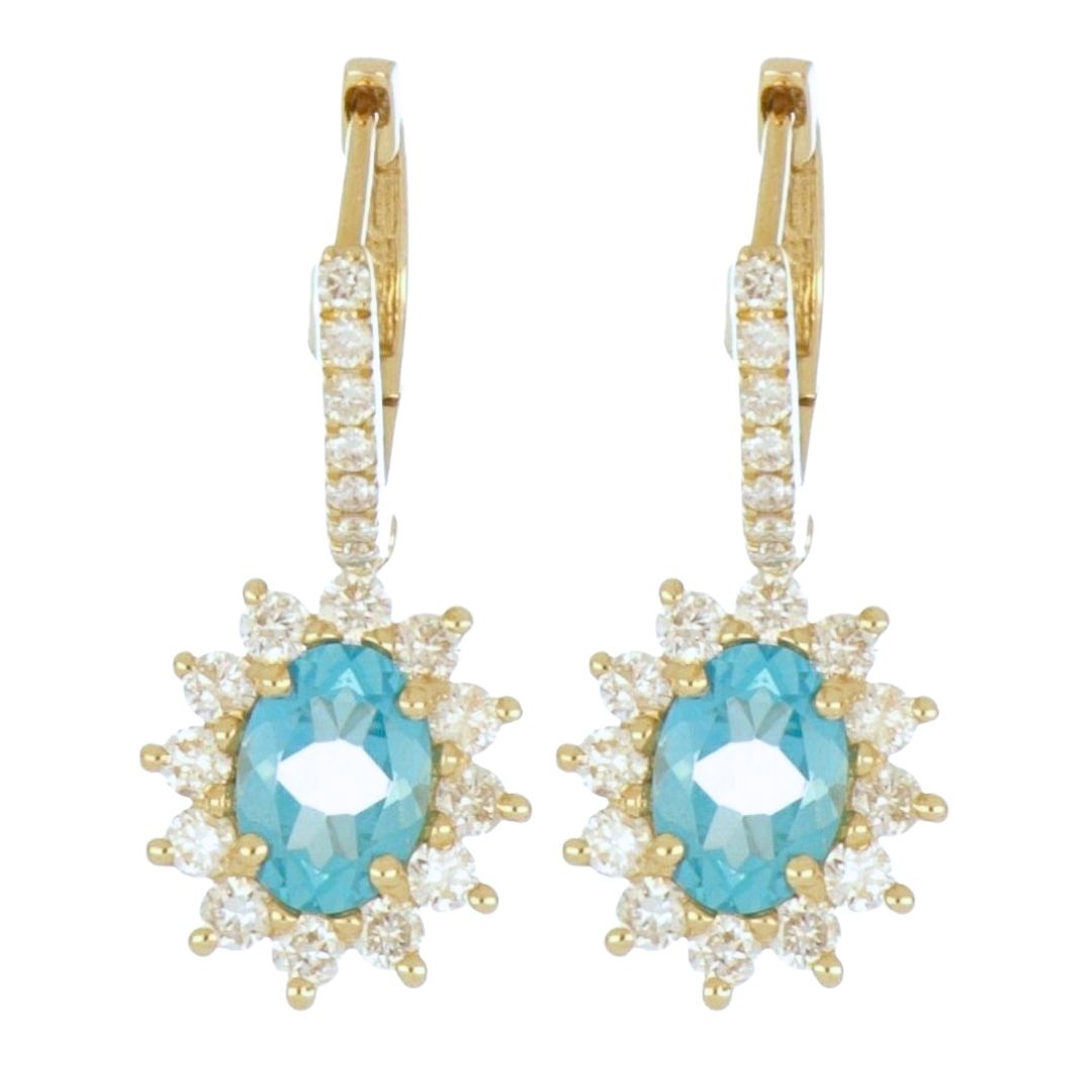 Paraiba Topaz Earrings (Paraiba Topaz 1.82 cts. Round White Diamond 0.66 cts.)
